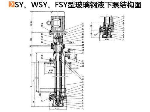 SY、WSY、FSY型玻璃鋼液下泵。WSY型泵為立式玻璃鋼液下旋渦泵、FSY型泵為立式玻璃鋼液下離心泵。該泵因伸入貯罐、只要液體高于泵泵體,既可不灌液而起運(yùn)送液,平蓋板下設(shè)有泄漏孔。液體不會(huì)向貯罐外泄漏。